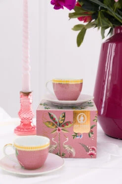 Pip Studio 2er-set: Geschirr „Espresso Cups & Saucers Flower Festival“ In Rosa – 120 Ml
