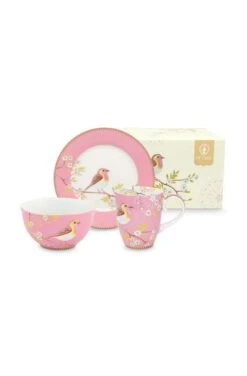 Pip Studio 3tlg: Geschir „Breakfast Set Flower Festival“ In Rosa