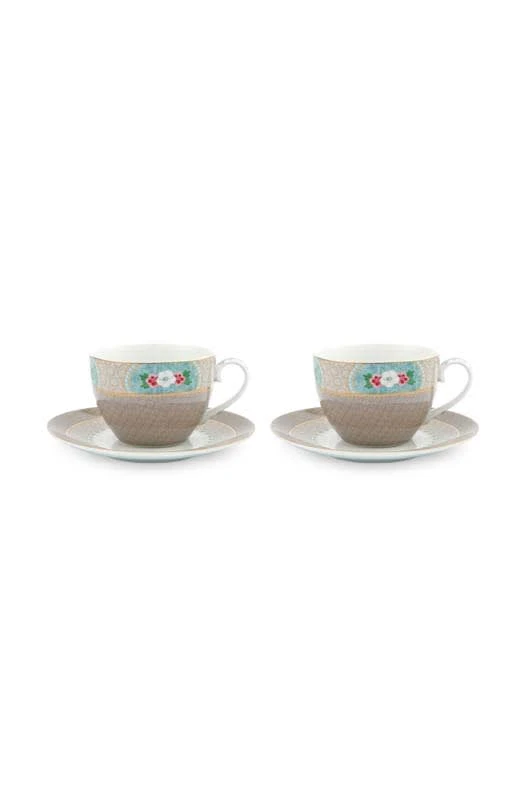 Pip Studio 2er-set: Geschirr „Cups & Saucers Blushing Birds“ In Kaki – 280 Ml