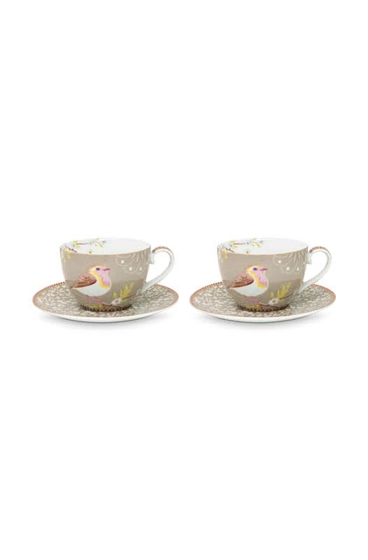 Pip Studio 2er-set: Geschirr „Cups & Saucers Early Bird“ In Kaki – 280 Ml