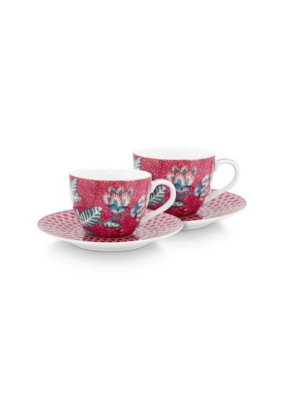 Pip Studio 2er-set: Geschirr „Espresso Cups & Saucers Flower Festival“ In Rosa – 120 Ml