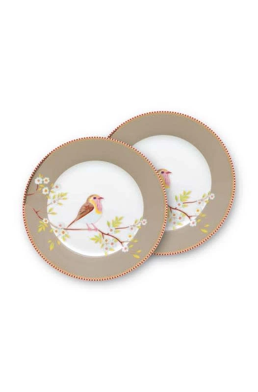 Pip Studio 2er-set: Geschirr „Plates Early Bird“ In Kaki – (D) 21 Cm
