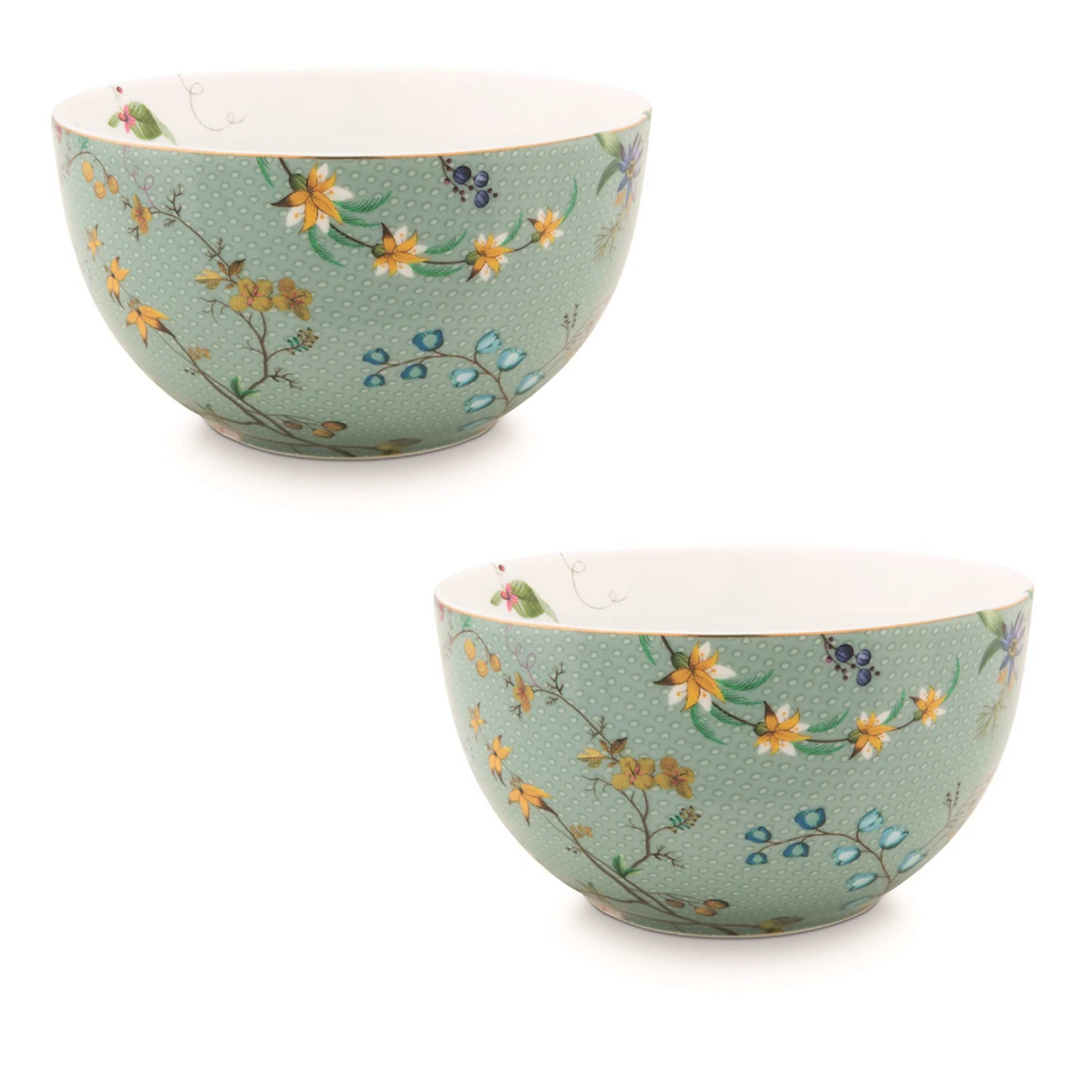 Pip Studio 2er-set: Geschirr „Set/2 Bowls Jolie Flower“ In Blue – 12cm