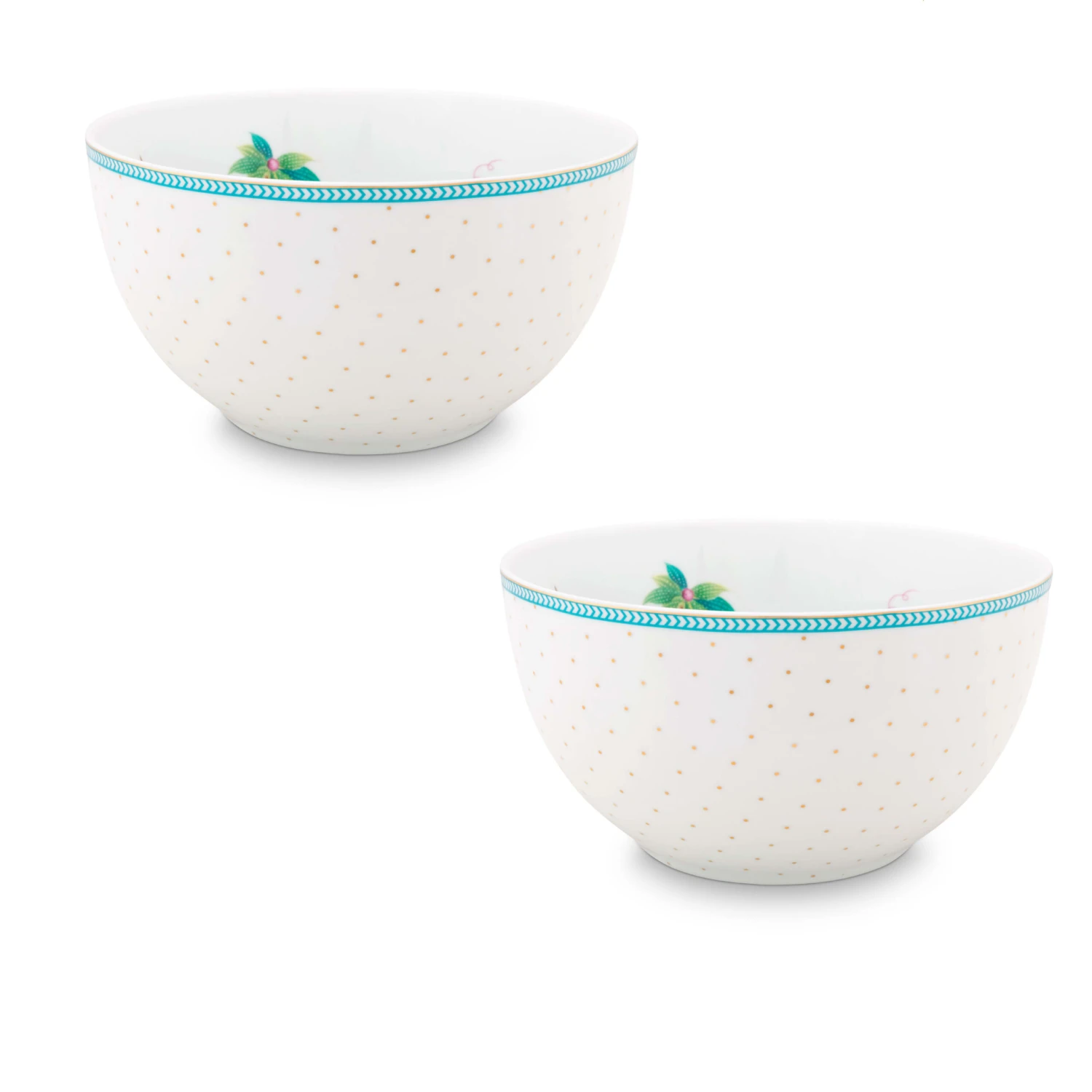 Pip Studio 2er-set: Geschirr „Set/2 Bowls Jolie Golden Flower Dots“ In Weiß – 15cm