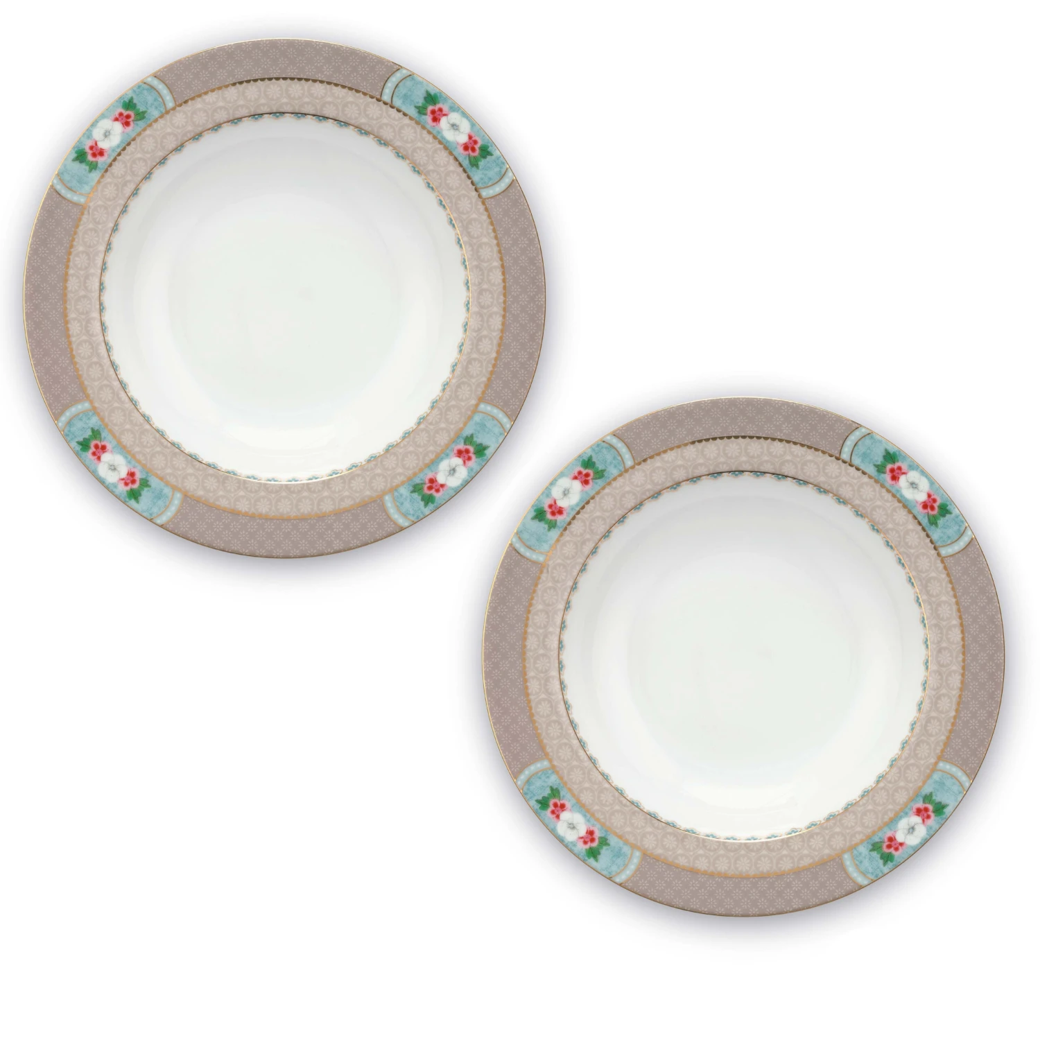 Pip Studio 2er-set: Geschirr „Set/2 Deep Plates Blushing Birds“ In Khaki – 21,5cm