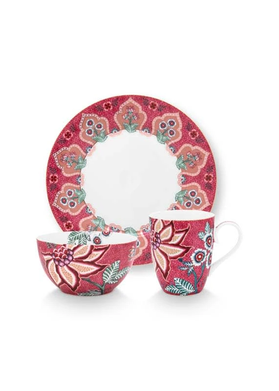Pip Studio 3tlg: Geschir „Breakfast Set Flower Festival“ In Rosa
