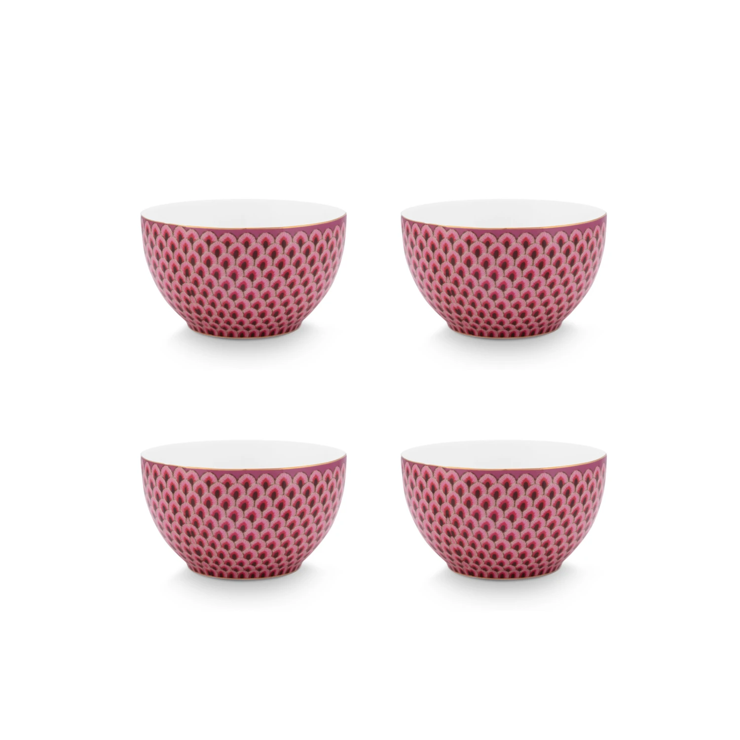 Pip Studio 4er-set: Geschirr „Set/4 Bowls Flower Festival Scallop“ In Rosa – (D)9,5cm