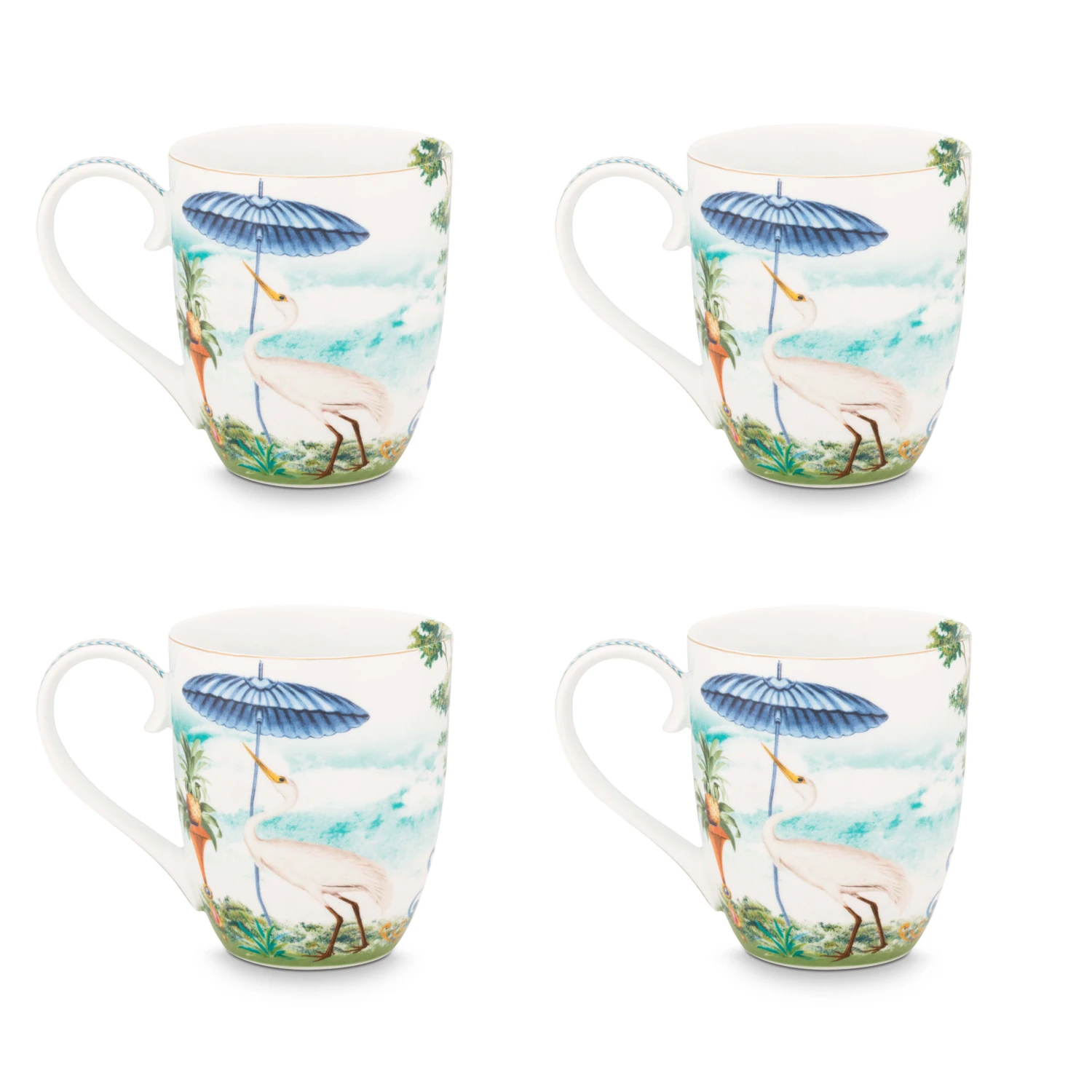 Pip Studio 4er-set: Geschirr „Set/4 Mugs Jolie Heron“ In Weiß – 450ml