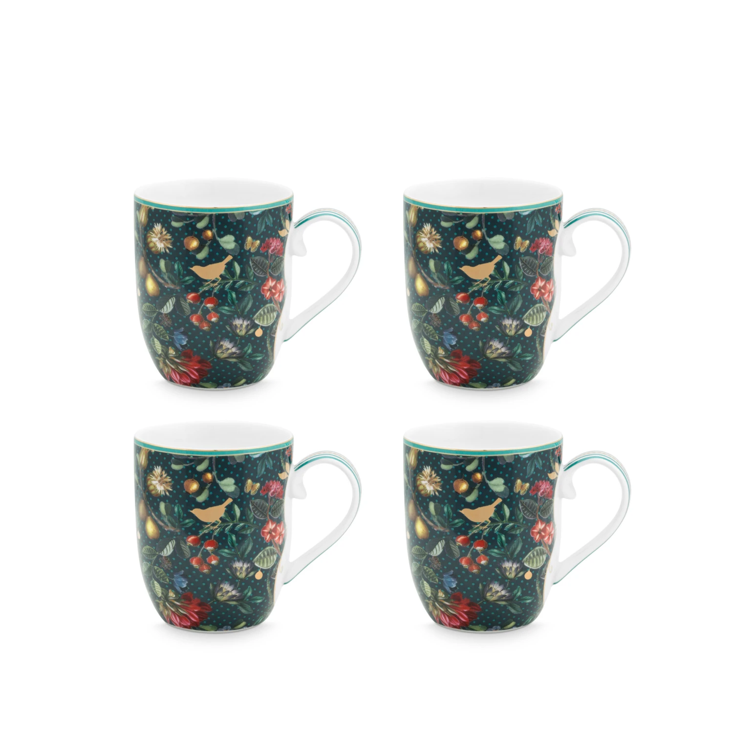 Pip Studio 4er-set: Geschirr „Set/4 Mugs Winter Wonderland Overall“ In Blau