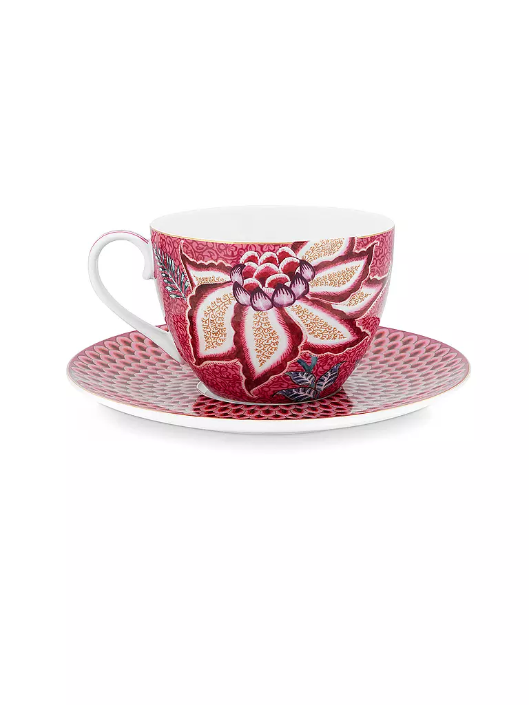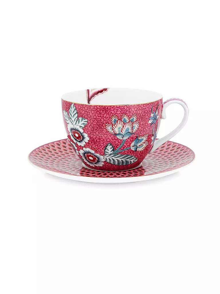 Die spielerisch platzierten Blütenzweige mit aufwendig verzierten Blüten und Blättern machen dieses raffinierte Design zu einem besonders reichen Erlebnis.