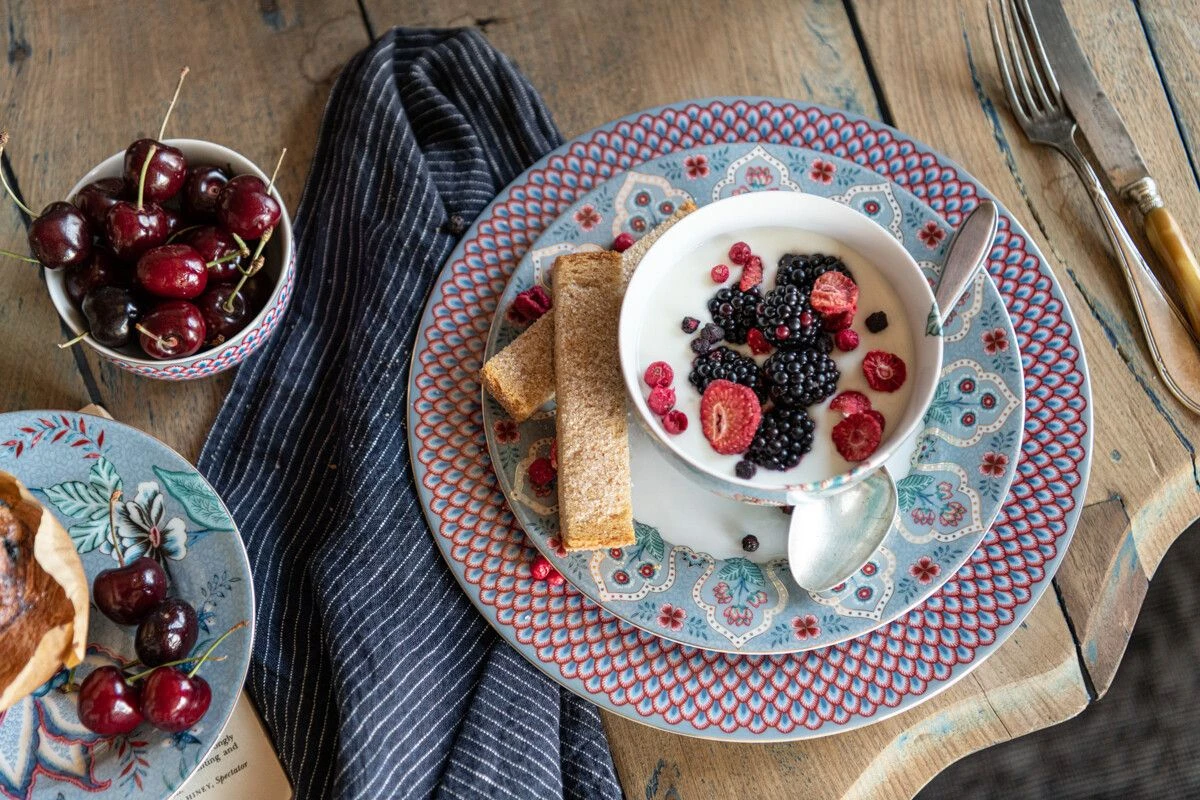 Ergänzen Sie Ihre Porzellansammlung mit diesem 26,5 cm großen Speiseteller Flower Festival. Dieses reiche florale Muster zeigt eine Vielzahl fantasievoller roter und rosafarbener Chintzblumen mit hellblauen und grünen Blättern. Die spielerisch angeordneten Blütenzweige mit kunstvoll verzierten Blüten und Blättern verleihen diesem eleganten Design eine besonders luxuriöse Ausstrahlung und Anmutung. Unser Flower Festival-Porzellan wird Ihr Porzellanschränkchen und Ihren Tisch zum Strahlen bringen.