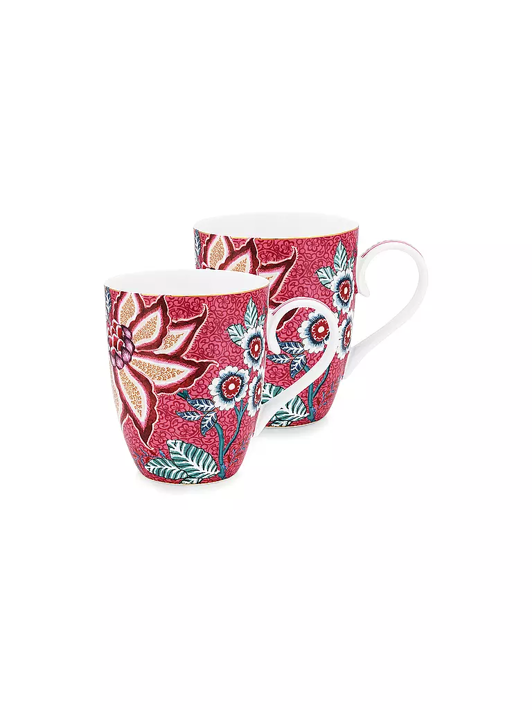 PIP STUDIO, Henkelbecher2er Set Large 350ml Flower Festival Dark Pink