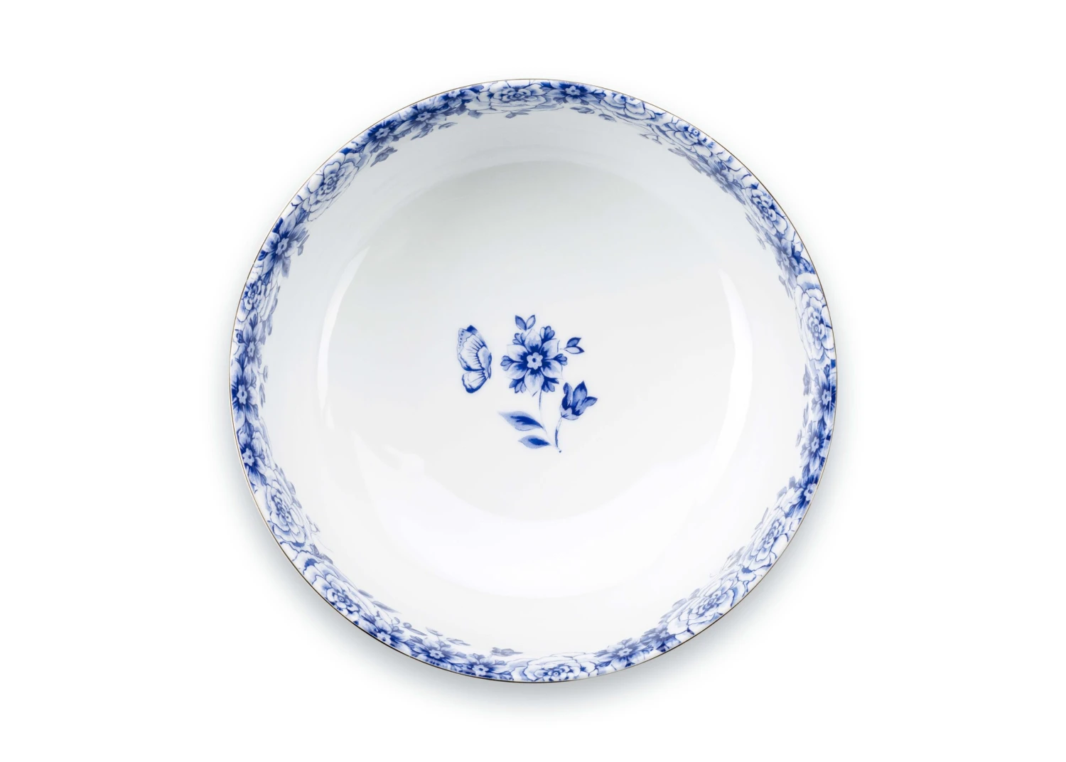 Die Schale ziert ein raffiniertes Design aus subtilen blauen Elementen und goldenen Details. In verschiedenen Größen erhältlich.