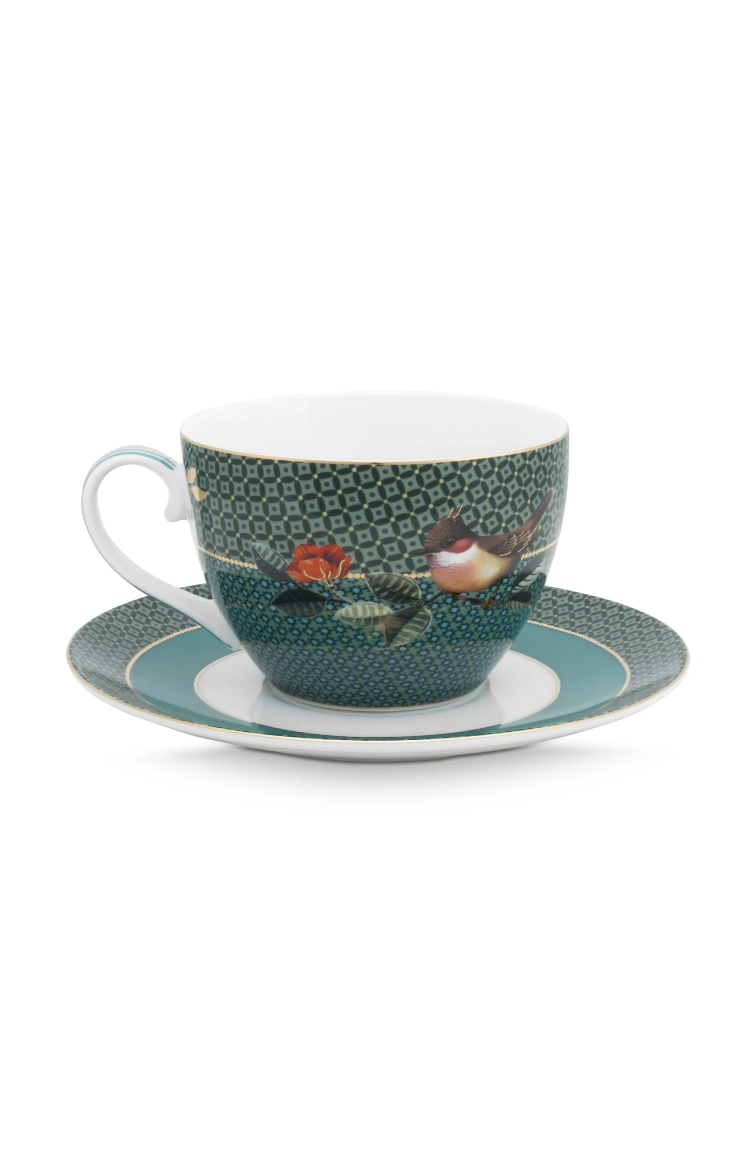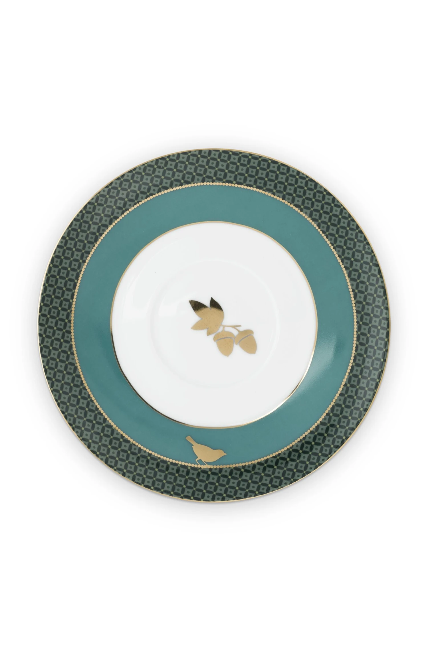 Grüne Cappuccino Tasse & Untertasse als Teil der Winter Wonderland Kollektion von Pip Studio. Dekoriert mit den für die Serie typischen Beeren, Eicheln und Blumen, sowie hübschen goldenen Details. Die perfekte Ergänzung für Ihren Kaffeetisch.